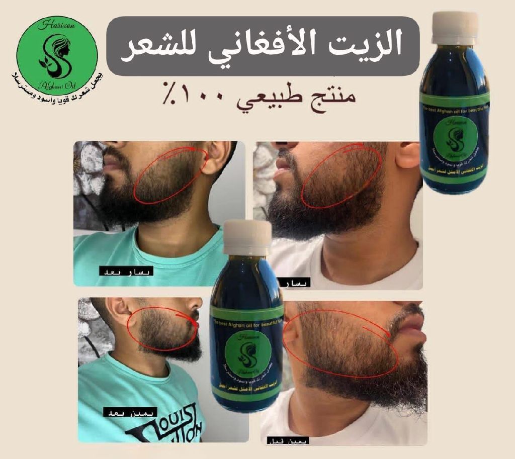 متاح الزيت الأفغاني للشعر، ينعم ويكثف ويطول الشعر، ويملأ فراغات اللحية وفروة الرأس، نتيجة مضمونة خلال شهر من الاستخدام، الدفع بعد الاستلام، والتوصيل لجميع مدن المملكة وجميع دول الخليج
