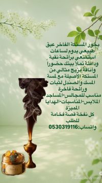 هذه قائمة بالأسعار ماسك المشاط 100 ريال زيت الشعر 120 ريال "ملحوظة الماسك والزيت يتم بيعهم مع بعض في شكل باكج ومعهم هدية" بخور العنفر 200 ملغ 50 ريال بخور العنفر 100 ملغ 25 ريال بخور المستكة 50 ملغ 20 ريال للتواصل