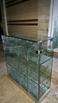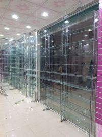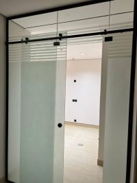 We install tempered glass doors. The price per door is 100 Saudi Riyals. The frontage is 2.5 meters by 2.5 meters. We also install all glass