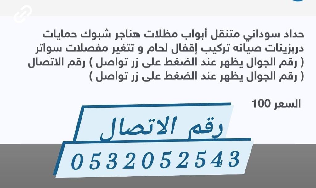 حداد متنقل أبواب حمايات درابزينات هناجر مظلات صيانة تركيب أقفال عادي الكتروني لحام وتغيير مفصلات صيانة وتصنيع جميع أعمال الحدادة