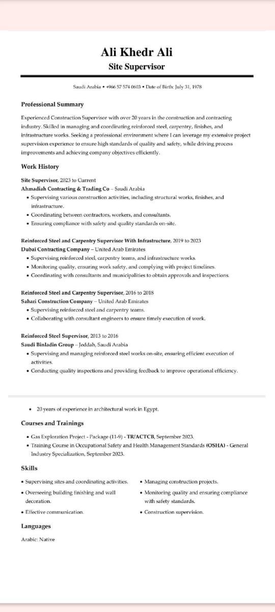 مشرف عمال ونجارين وحدادين أخاف الله في عملي