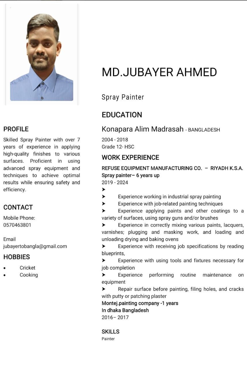 I am a skilled spray painter. I want a job as a spray painter
