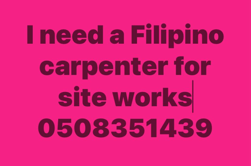 Need carpenter for site installation works Filipino & Indian nationality to work in Riyadh city