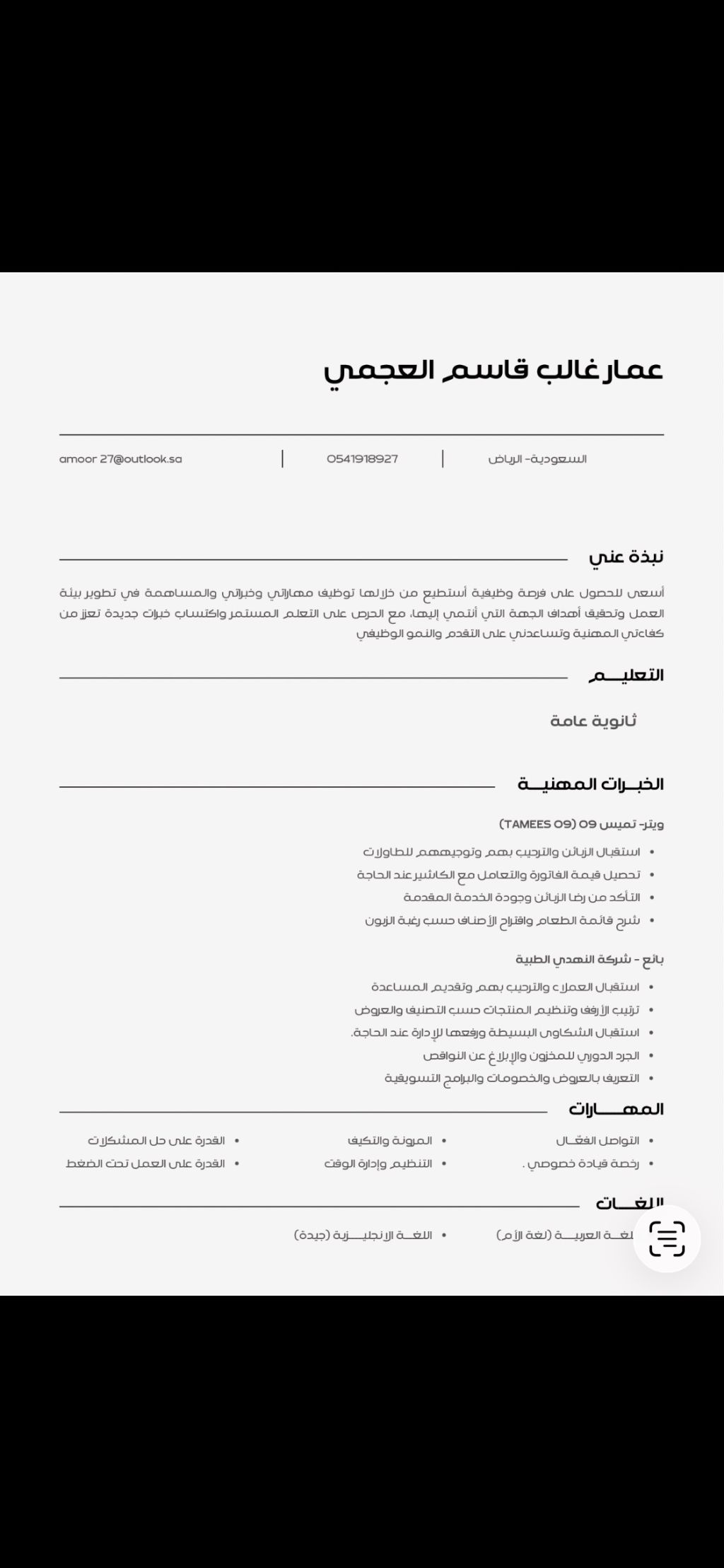 أنا عمار العجمي شاب يمني مواليد السعودية سبق واشتغلت عدة أشياء كول سنتر تركي لذبائح ومستودعات النهدي وغيرها من الأماكن أحتاج أي وظيفة كاشير أو كول سنتر أو أي حاجة