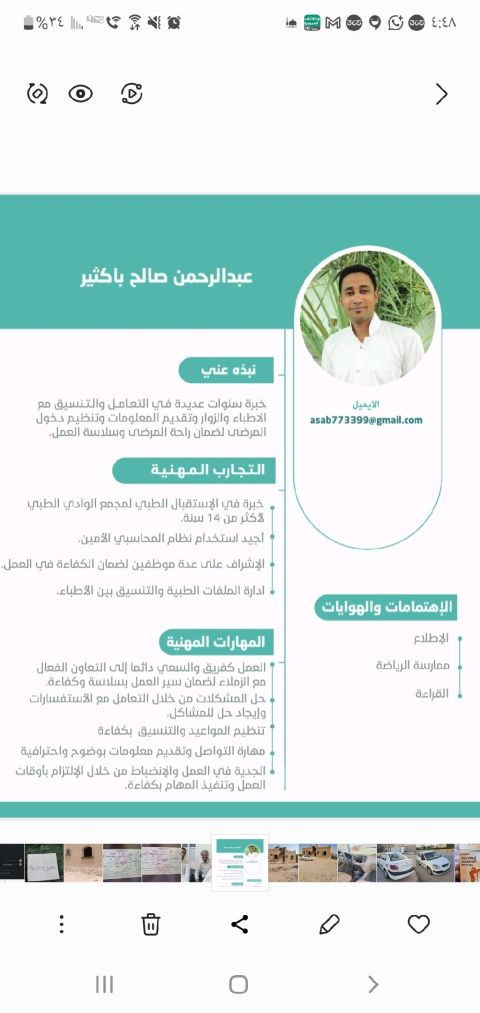 محمد مصطفى محسب العمر 25 الجنسية مصري المؤهل حاصل علي بكالوريوس نظم ومعلومات متواجد في السعودية الرياض إقامة سارية ابحث عن فرصة عمل داخل المملكة خبرات في مجالات مختلفة مثل (المبيعات - والاستقبال - خدمة عملاء - اشراف) ولدي خبرة ممتازة في استخدام الكمبيوتر وبرامج التواصل الاجتماعي وأيضا برامج الأوفيس (Excel & Word) ابحث عن فرصة عمل مناسبة لتنمية مهاراتي العملية
