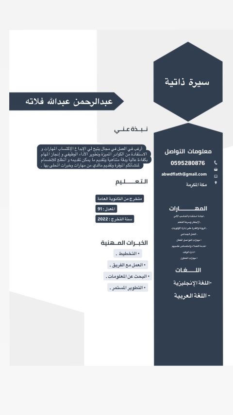 الاسم أحمد حامد مصري 45 عام. تأشيرة جديدة قابلة للنقل وابحث عن عمل. مشرف عمال كاشير أمين مستودع مشرف العمل في أي مجال خبرة 10 سنوات في السعودية