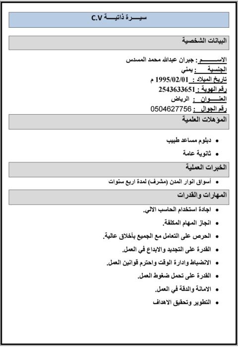 يمني خبرة في الكاشير والاشراف في الأسواق خبرة أربع سنوات