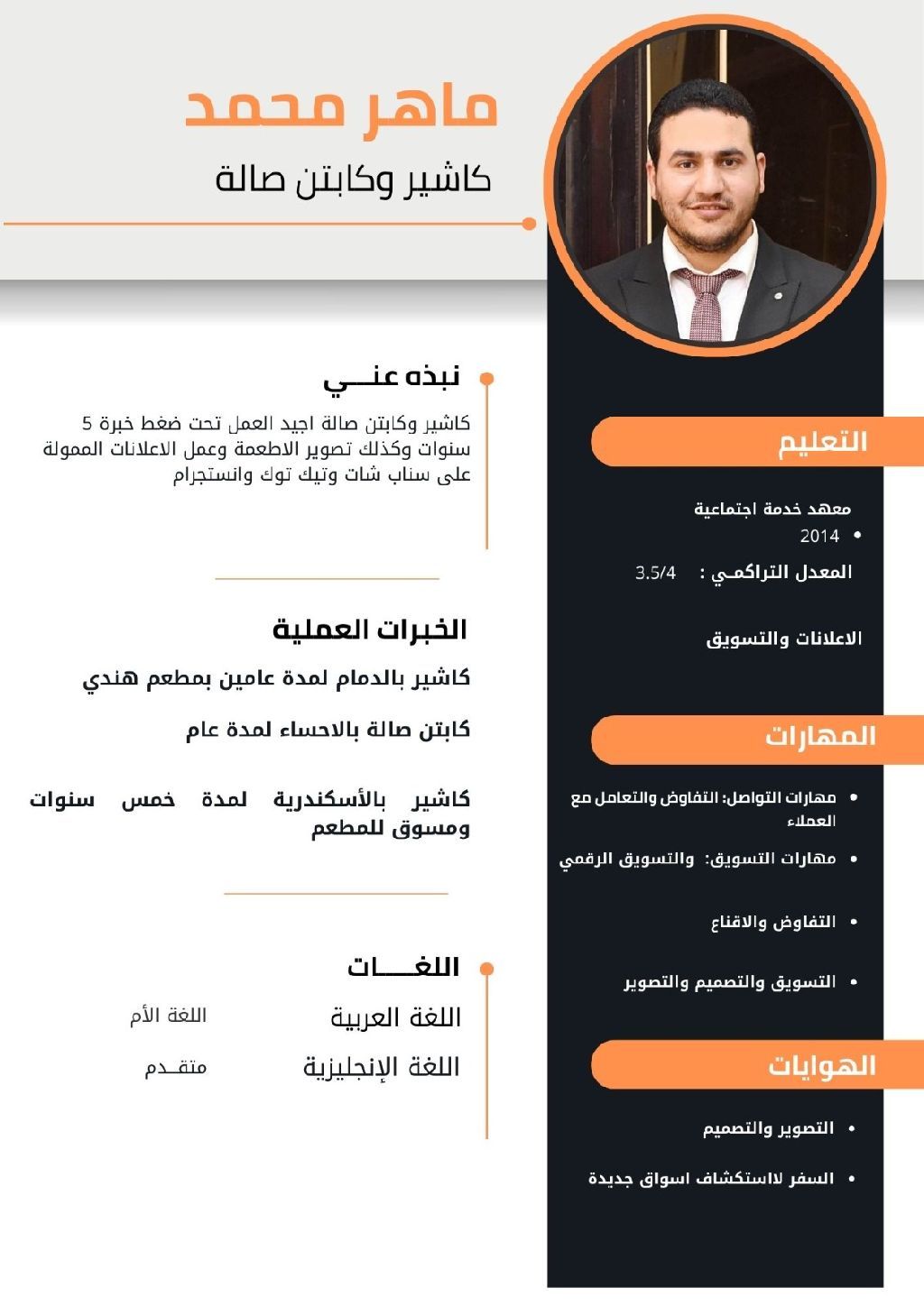 ابحث عن عمل كاشير لدى خبرة كبيرة بالعمل في المطاعم امتلك مهارات متقدمة في العمليات الحسابيه والتواصل مع العملاء وتقديم خدمة احترافية ولدى مهارات بالتصميم والتسويق الالكتروني وحسن الاستقبال