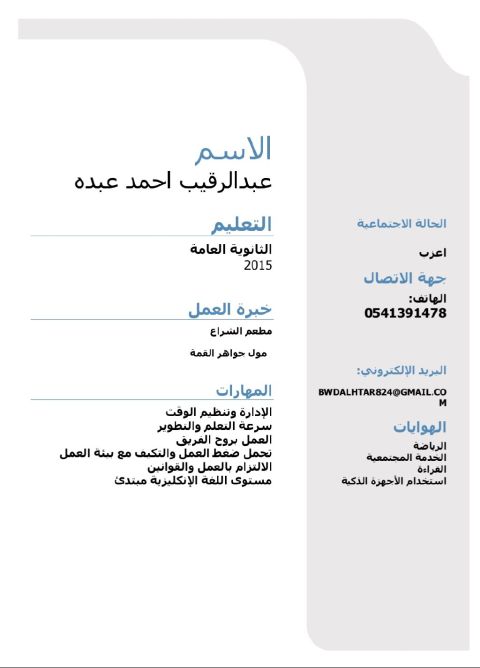 أرغب بالتقدم للعمل، حيث امتلك خبرة قوية في التسويق والتعاملات العامة خدمة العملاء الكاشير المبيعات التوصيل وأتميز بالجدية في العمل والالتزام، والقدرة على التكيف مع بيئة العمل وتحقيق الأهداف. جاهز للمقابلة في أي وقت الاسم مطهر عامر الجوال الايميل الموقع الرياض بانتظار ردكم