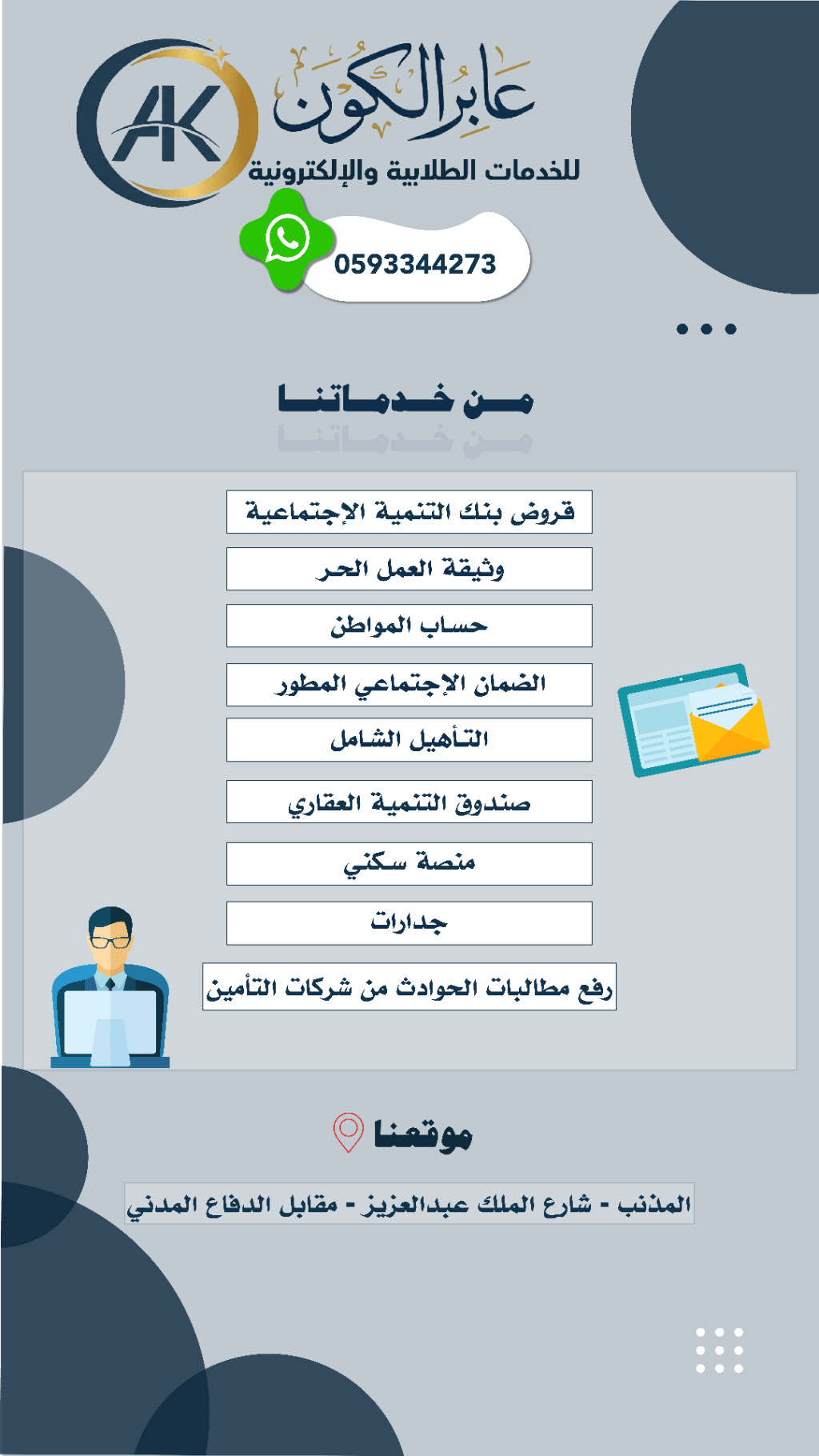 مطلوب موظف خدمات طلابية والكترونية ويجيد الخدمات العامة في مكتب في القصيم بالمذنب من لدية الرغبة ويجيد العمل وذو خبرة الرجاء إرسال السيرة الذاتية على الواتساب وشكرا لكم