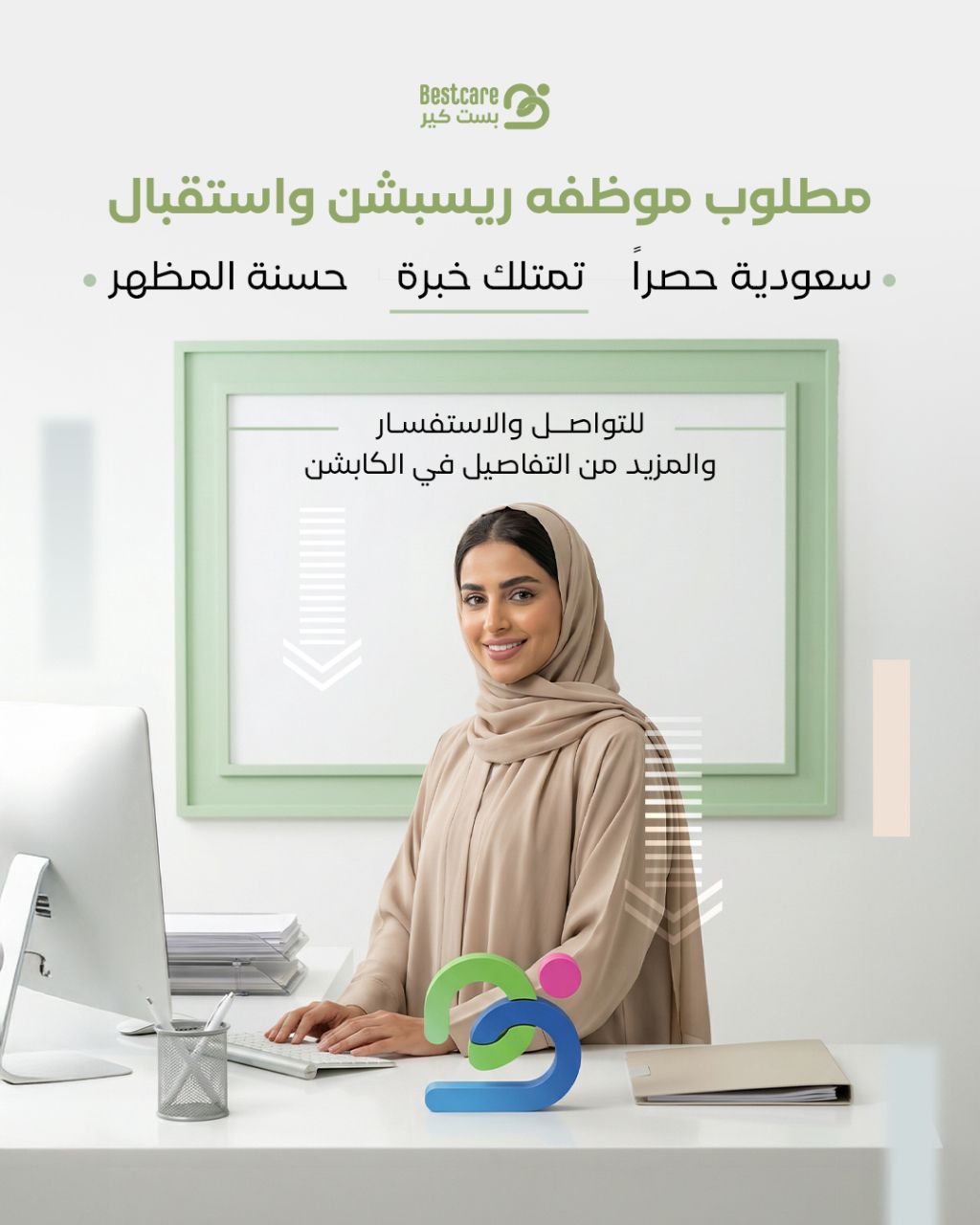 نبحث عن موظفة للانضمام الى فريقنا الشروط تجيد استخدام أنظمة الحاسب تتقن اللغة الانجليزية حسنة المظهر ولبقة في التعامل قادرة على العمل تحت الضغط اذا تشوفين نفسك مناسبة ارسلي سيرتك الذاتية العنوان الرياض حي قرطبة / شارع سعيد بن زيد / أعلى محل درعه للعطور وبجوار صيدلية كنوز، الدور الأول