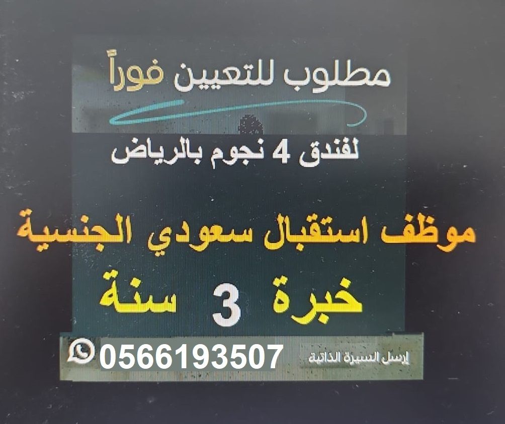 للتعيين فورا موظف استقبال لفندق 4 نجوم (سعودي الجنسية فقط) في الرياض شرط خبرة 3 سنوات حي السليمانية - طريق الملك سعود