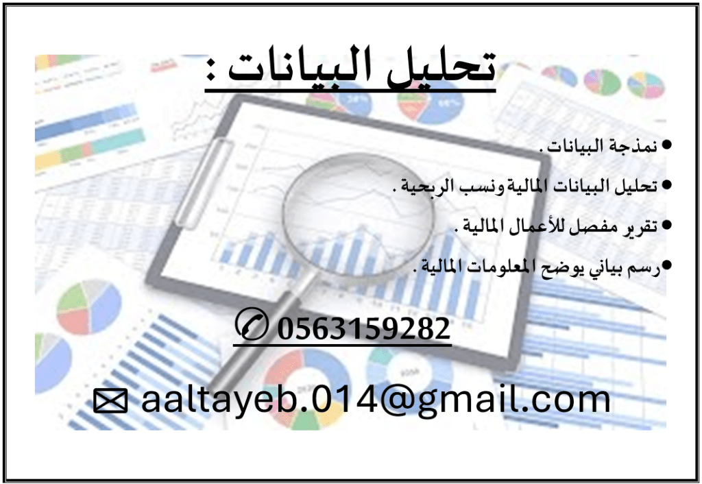 محلل بيانات للعمل عن بعد نمذجة البيانات - تحليل البيانات - مؤشرات الأداء - تقرير الربح والخسارة - تقرير بياني للمعلومات المالية