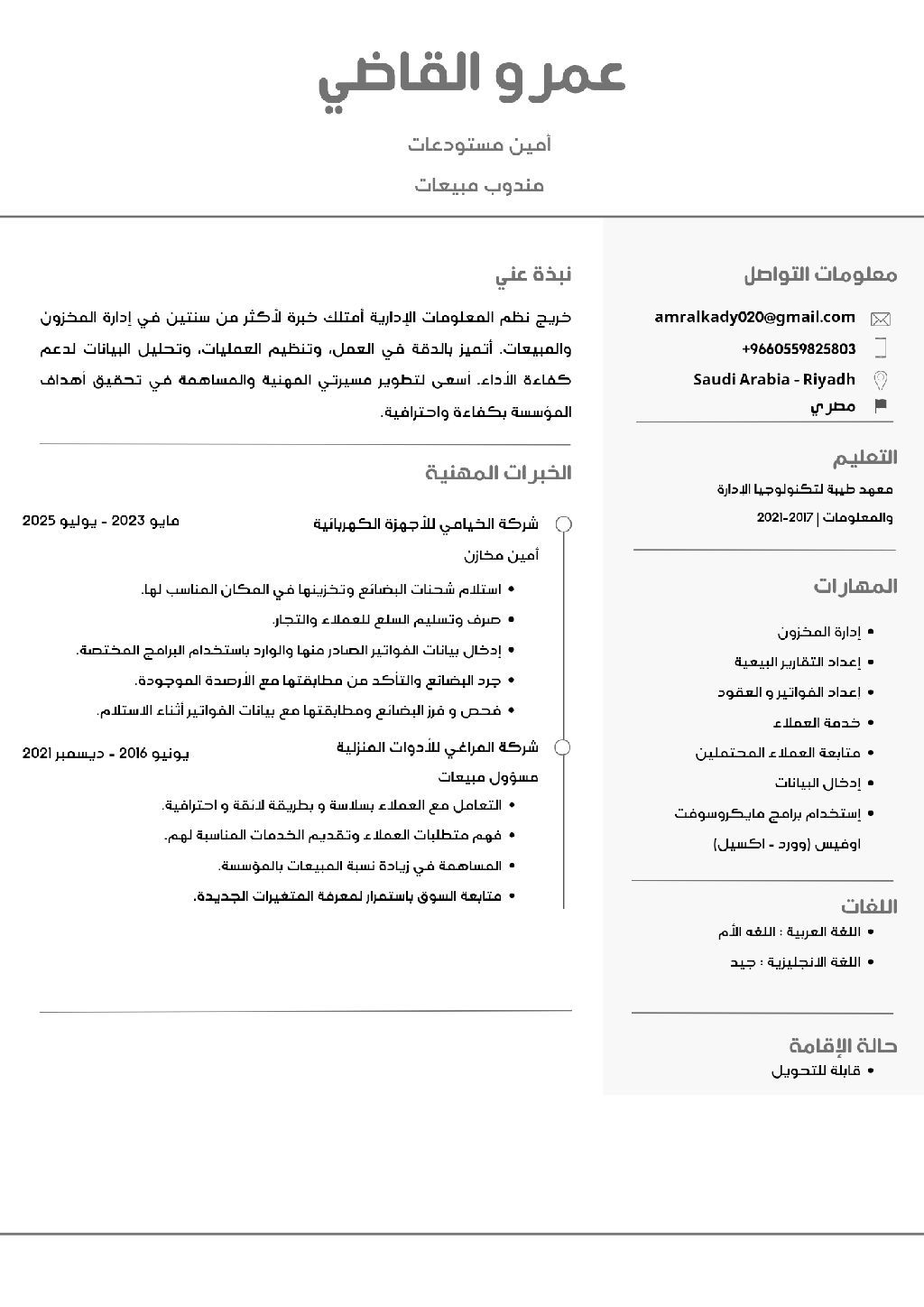 باحث عن عمل - مدخل بيانات / أمين مستودع / اداري شاب 26 سنة، حاصل على بكالوريوس نظم معلومات ادارية، خبرة سنتين في المخازن والمبيعات، ومتمكن من برامج الأوفيس والأنظمة المحاسبية. ابحث عن فرصة عمل مناسبة في الرياض في مجال ادخال البيانات، إدارة المستودعات، أو الأعمال الادارية. الاقامة قابلة للتحويل، وجاهز للعمل فورا