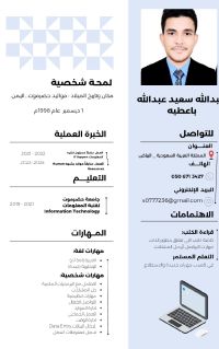 يمني الجنسية محافظة حضرموت. العمر 27 سنة. مقيم في المملكة العربية السعودية - الرياض. خريج جامعة حضرموت تقنية المعلومات. سبق لي العمل مساعد موارد بشرية HR. ومدخل بيانات وخدمة العملاء ومسؤول اداري في ما يتعلق بإدارة العمل واعداد التقارير اليومية ابحث عن وظيفة