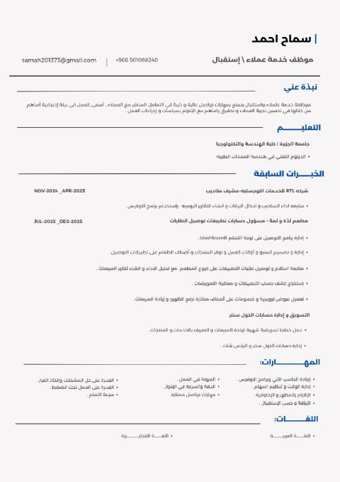 سوداني خبرة في مجال الخدمات الالكترونية العامة 3 سنة ونصف في هذا المجال ملم بكل الخدمات العامة من قوى مقيم الشركات التأمينات مكتب العمل ناجز اعتماد الزكاة والضريبة ديوان المظالم الضمان الاجتماعي المطور حساب المواطن المركز السعودي وكافة المعاملات الأخرى