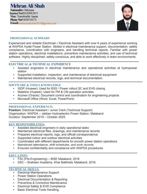 Junior Clerk at WAPDA with over 6 years of professional experience (17 - Sep - 2019 31 - Nov - 2025) in administrative and clerical operations. Skilled in file handling, office documentation, record management, and also Maintain Vehicle maintenance log book & day - to - day office coordination. Proficient in MS Word and Excel with good typing speed and basic accounting knowledge