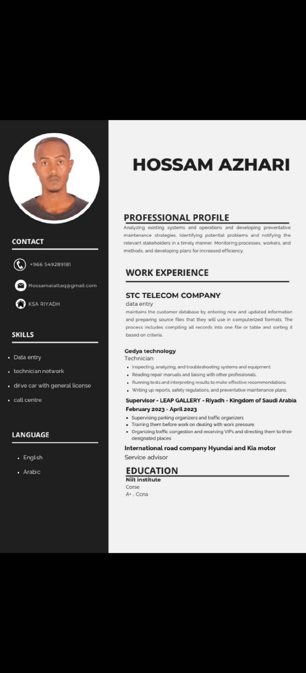 ابحث عن فرصة عمل ممتازة ونقل كفالة سوداني في الرياض الثانوية العامة الدمام شهادة دبلوم شبكات NiiT الهند دعم فني ادخال معلومات لغة انجليزيه جيدا جدا تحدثا وكتابة عملت بشركات تقنية ولوجستيه توكيلات الجزيرة فورد هيونداي للتقنية للتواصل والتسجيل واتساب الرياض