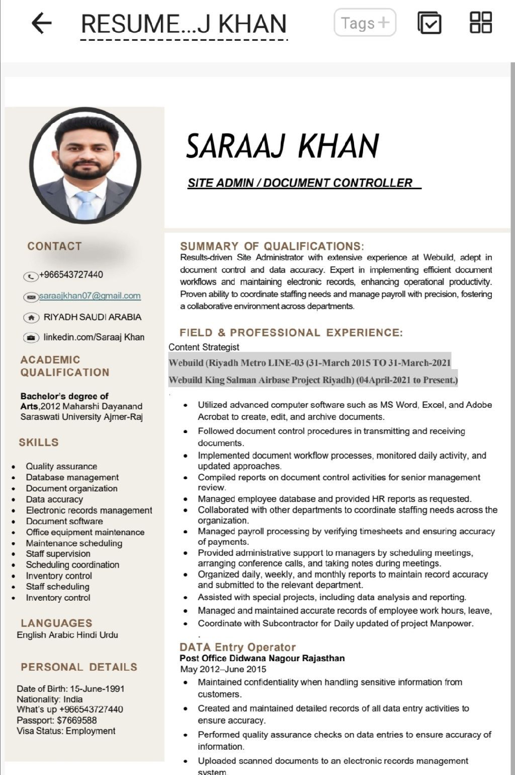 My name is Saraj Khan and I am looking for a job. I know data entry work and have been doing this work for 9 years. I have 10 years of knowledge about it and have worked in a company in Saudi Arabia Riyadh. Now I am looking for a job. If you need any of them, please call me