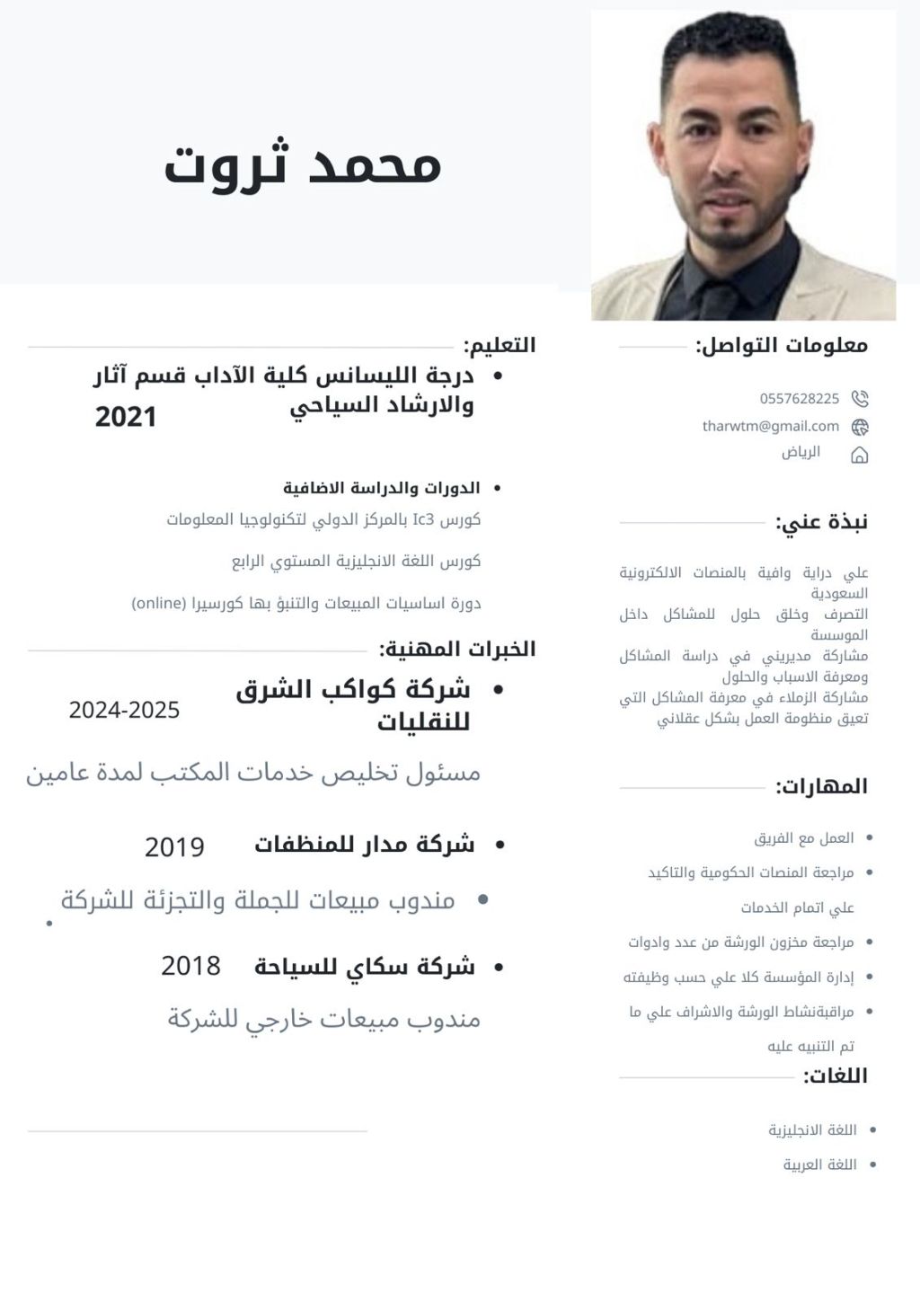 ابحث عن عمل في مكتب خدمات عامة أو نقليات خبرة 3 سنوات في الخدمات العامة ابشر قوى ناجز مدد والنقليات لوجستي وبيان وتم وخبرة عامان في المبيعات والتسويق