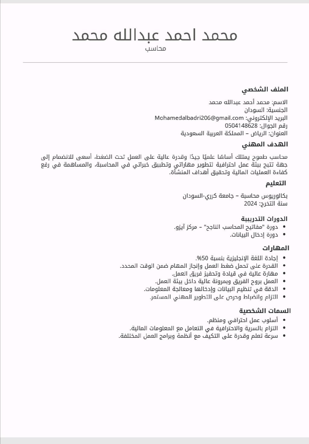 محاسب حديث تخرج ابحث عن فرصه لتطوير مهاراتي