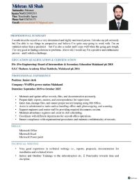 CV Summary Detail - oriented and highly organized Junior Clerk with over 6 years of professional experience at WAPDA (Hydel) Power Station, Jabban, the first hydel power station in Asia. Proven expertise in administrative and clerical operations, including office management, file and record handling, official correspondence, and inter - departmental coordination. Proficient in Microsoft Office