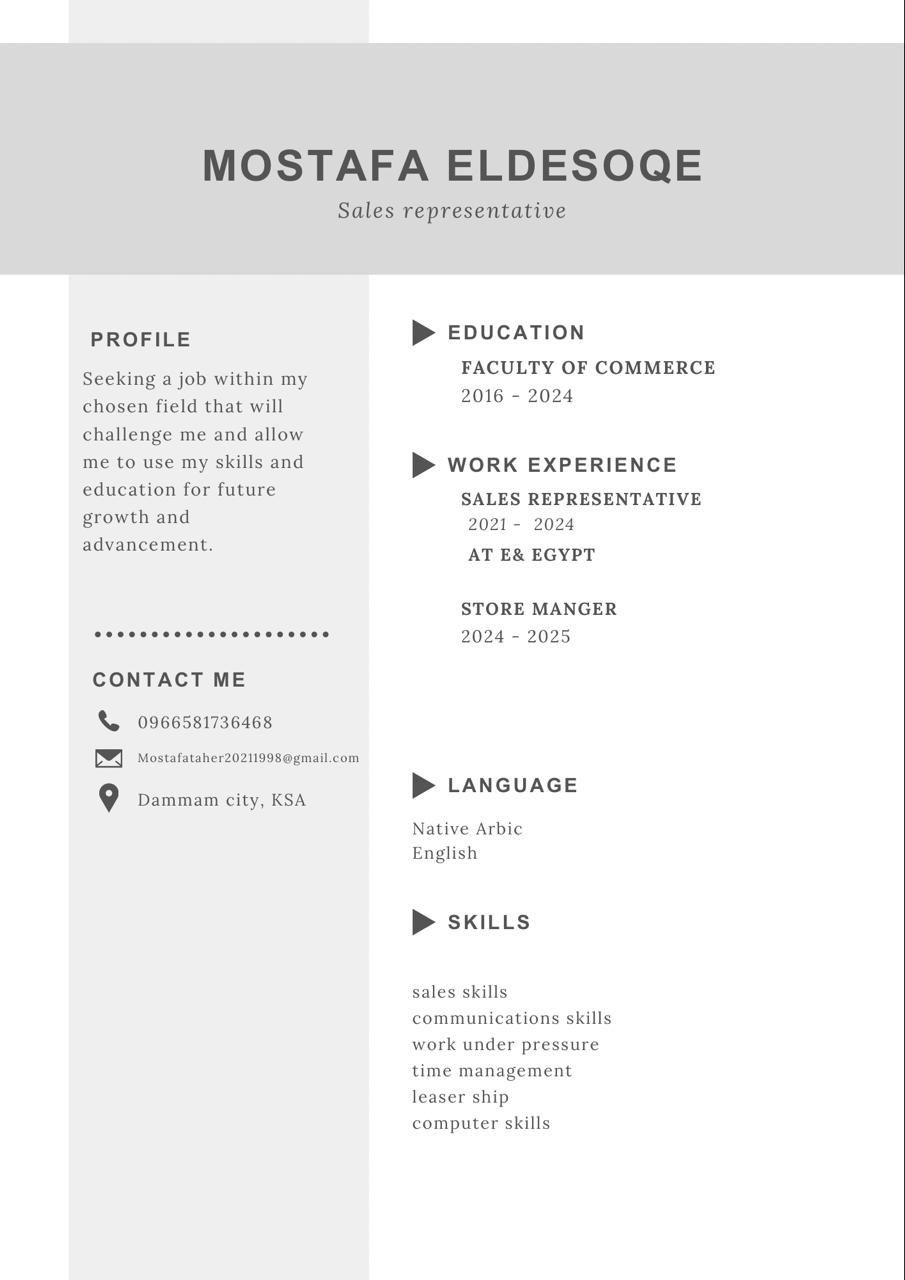 ابحث عن وظيفة عمل خريج كلية تجارة المنصوره مقيم في الدمام خبرة خمس سنوات بشركات التسويق والاتصالات في مصر لدي قدرة عل الاقناع وجلب عملاء جدد وانشاء قاعدة بيانات جيدا جدا في استخدام الكمبيوتر والانترنت