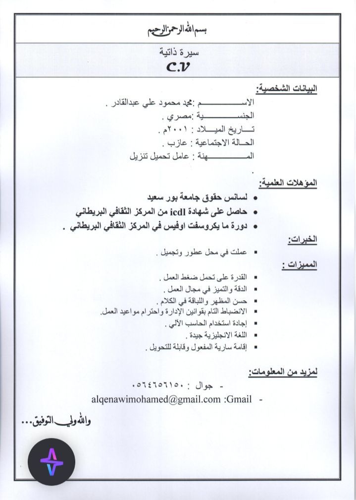 أجيد العمل بكافة برامج مايكروسوفت أوفيس وصيانة الكمبيوتر سوفتوير وهاردوير