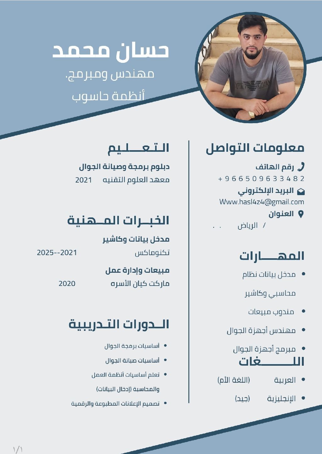 أنا مقيم يمني اشتغلت في عدة مجالات خبرة 8 سنوات في سوق العمل خبرة في المجال التقني والهندسي والمحلات التجارية والبرمجة اشتغلت في أسواق (ماركت) وفي محلات البيع أكسسوارات والجوالات سابقا ومدخل بيانات مؤسسات مخزون فواتير وارد كاشير مبيعات محل حلويات إقامة سارية