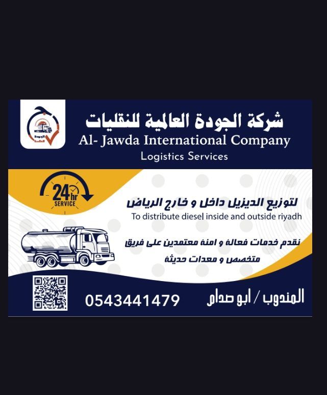 أنا أبو صدام. مندوب شركة الجودة العالمية لنقليات قسم الديزل والمحروقات نتشرف بخدمتكم على مدار 24 ساعة