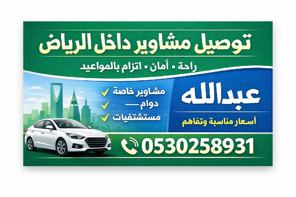 توصيل مشاوير يومية داخل الرياض مشاوير حسب الطلب التزام - أمان - أسعار طيبة - سيارة 2026