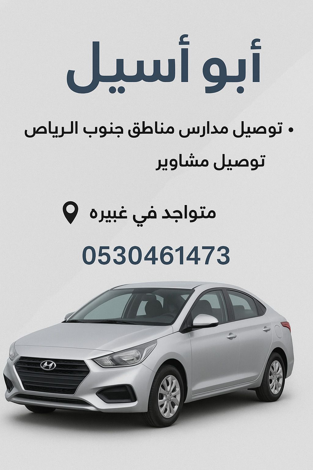 أبو أسيل توصيل مدارس دوامات ومشاوير جنوب الرياض متواجد في غبيره