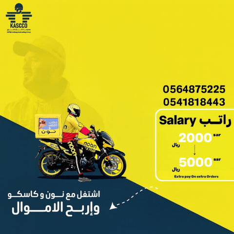 مطلوب مناديب دراجة نارية للعمل في شركة كفاح الشرق في الرياض الراتب يبدأ من 2000 ريال الى 3500 ريال الشركة توفر كل شيء السكن والدباب والبزين ساعات العمل 12 ساعة أيام 26 يوم