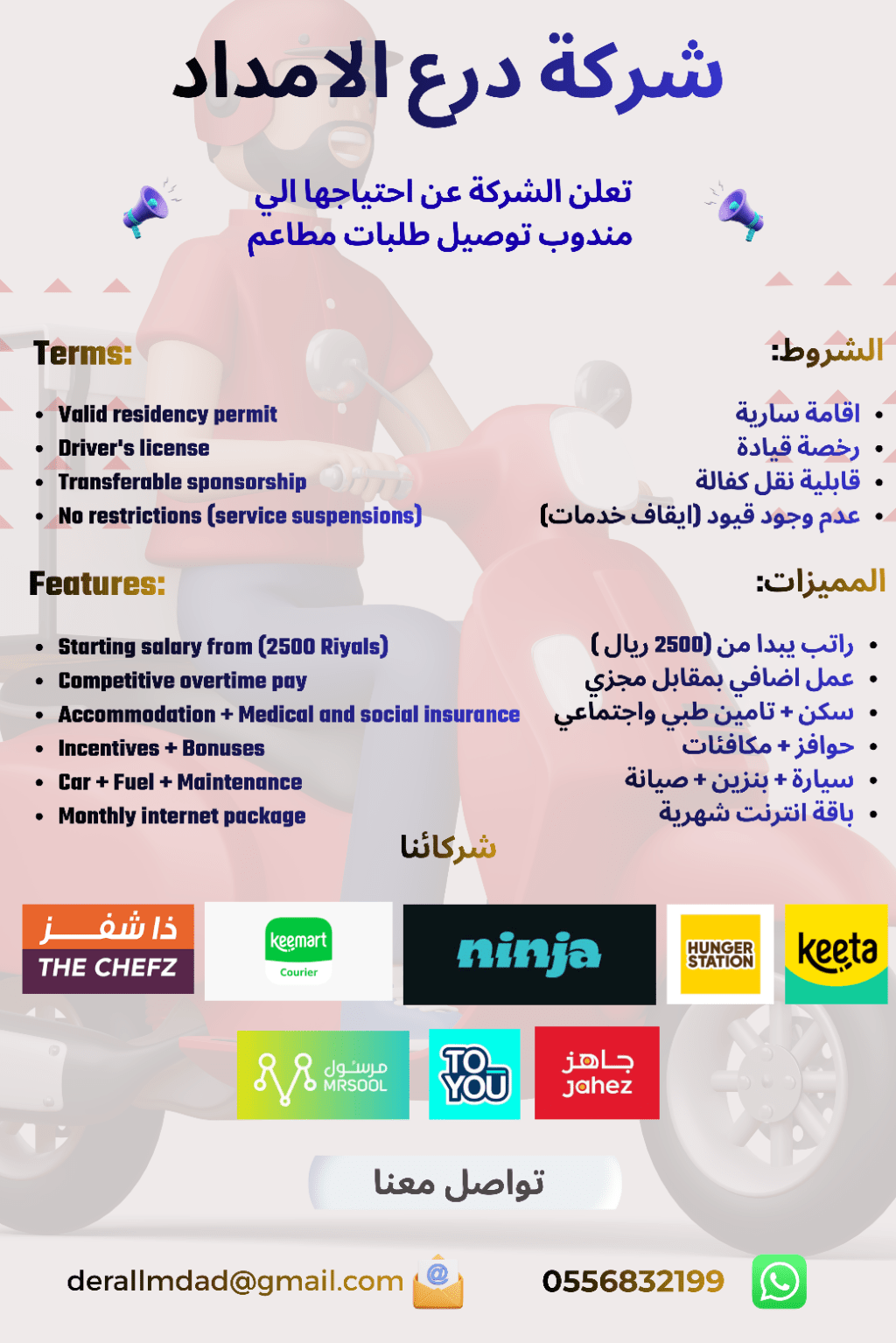 وظائف عمال دليفري في السعودية