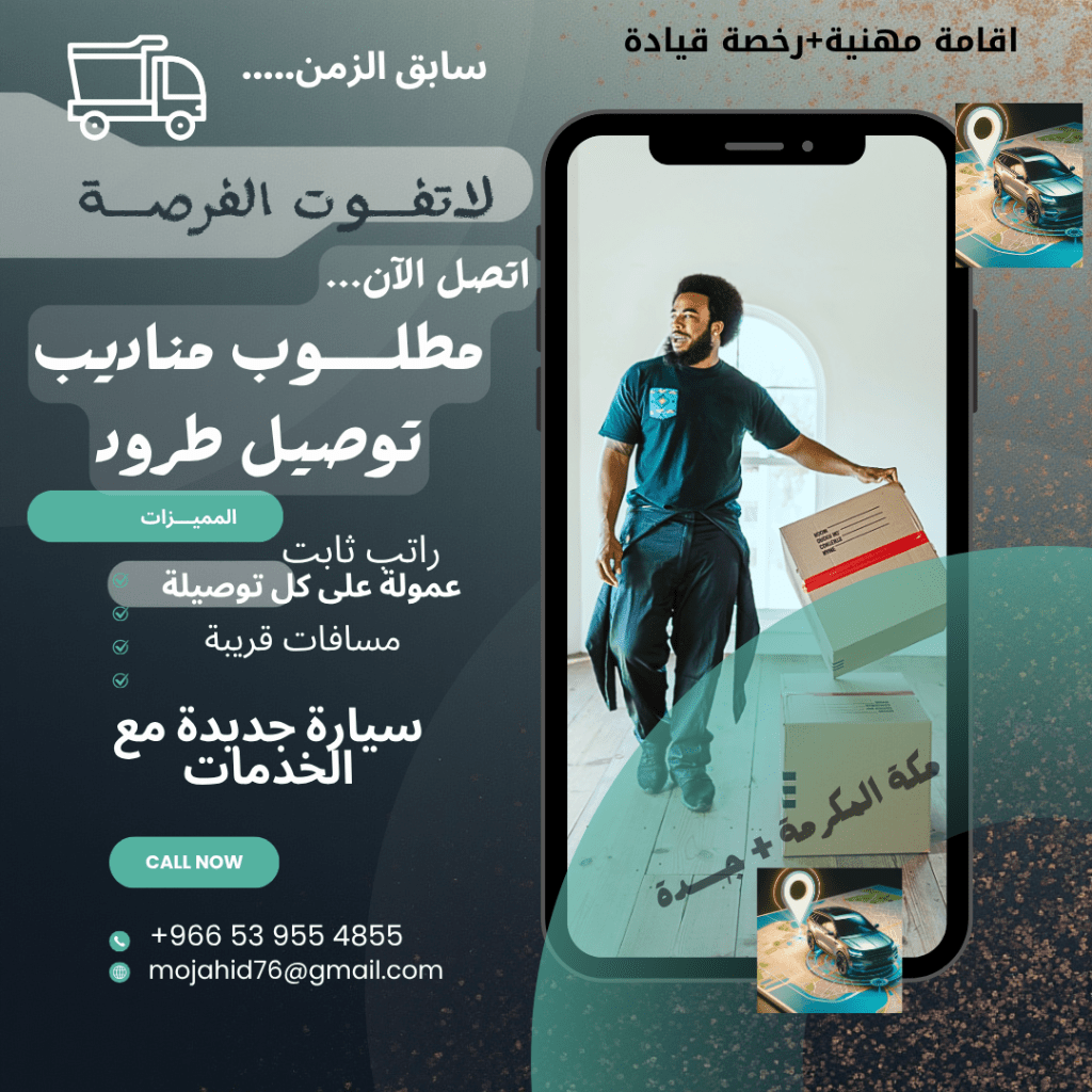 Delivery Drivers Needed in Riyadh Don't miss this opportunity Seize it if you want to work and reap the rewards of your hard work and effort. New car provided with services Flexible working hours Commissions in addition to a fixed salary Transfer of sponsorship after a period for outstanding performers Important requirements Valid professional residency permit + valid driver's license Work available