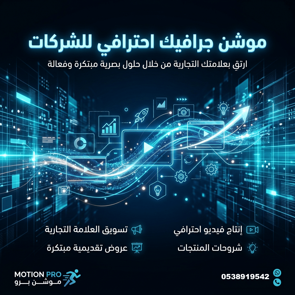 تصميم موشن جرافيك احترافي لتعريف شركتك أو خدماتك فيديو موشن جرافيك هو أفضل طريقة لشرح خدمات شركتك بشكل واضح وجذاب. اصمم فيديو تعريف احترافي يعرض نشاطك بطريقة حديثة