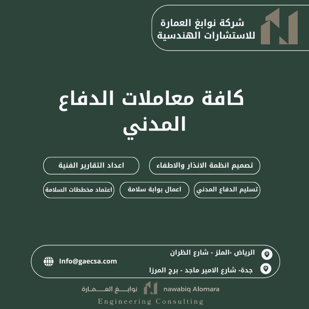 شركة نوابغ العمارة للاستشارات الهندسسية - تصميم واعتماد مخططات السلامة، تسليم الدفاع المدني، اصدار رخص البناء، الرفع المساحي، القرارات المساحية