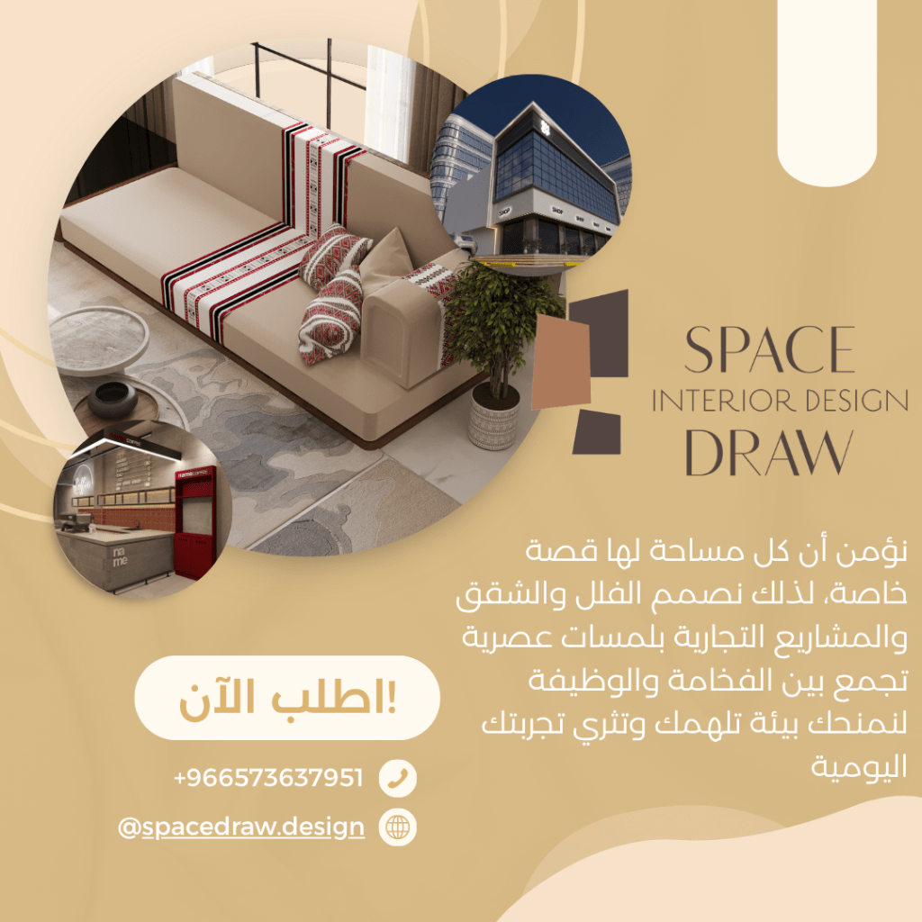 نحن في مكتب space draw نتخصص في مجال التصميم والتنفيذ الداخلي والخارجي، كما نعلن عن حوجتنا الى موظف تسويق برجاء التواصل معنا