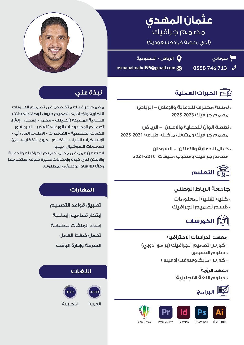 مصمم جرافيك متخصص في تصميم الهويات التجارية والاعلانية، تصميم حروف لوحات المحلات التجارية المضيئة (أكريلك - زنكور - أستيل. الخ) تصميم المطبوعات الورقية (الفلاير - البر وشاور - الكروت الشخصية - الفولدرات - الاظرف الرول أب - الستيكرات - البنرات - الأختام - دروع التذكارية. الخ) تصميمات السوشيال ميديا. ابحث عن عمل في مجال تصميم الجرافيك والدعاية واعلان لدى خبرة وامكانات كبير