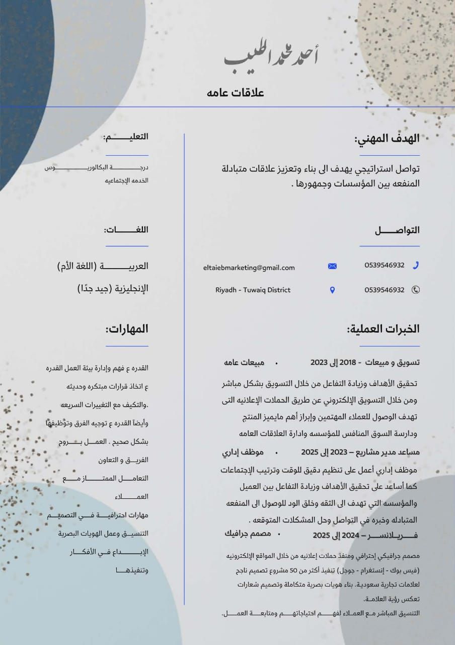 ابحث عن وظيفة تناسب خبرتي اعمل كمصمم جرافيكي محترف وانشاء الصفحات ع السوشيال ميديا ومنفذ حملات اعلانية بأقل تكلفة وعائد كبير وصانع ومنشئ محتوى مميز يستهدف المهتمين بالمجال استخدام أحدث الأدوات والذكاء الاصطناعي مع دراسة الأسواق المنافسه وتقديم أفضل عروض الاضافة لخبرتي في مجال التسويق مما لدي من مهارات في الاقناع وطريقة العرض وترتيب الأفكاء وابراز أهمية وجودة المنتج بأسلوب مبهر