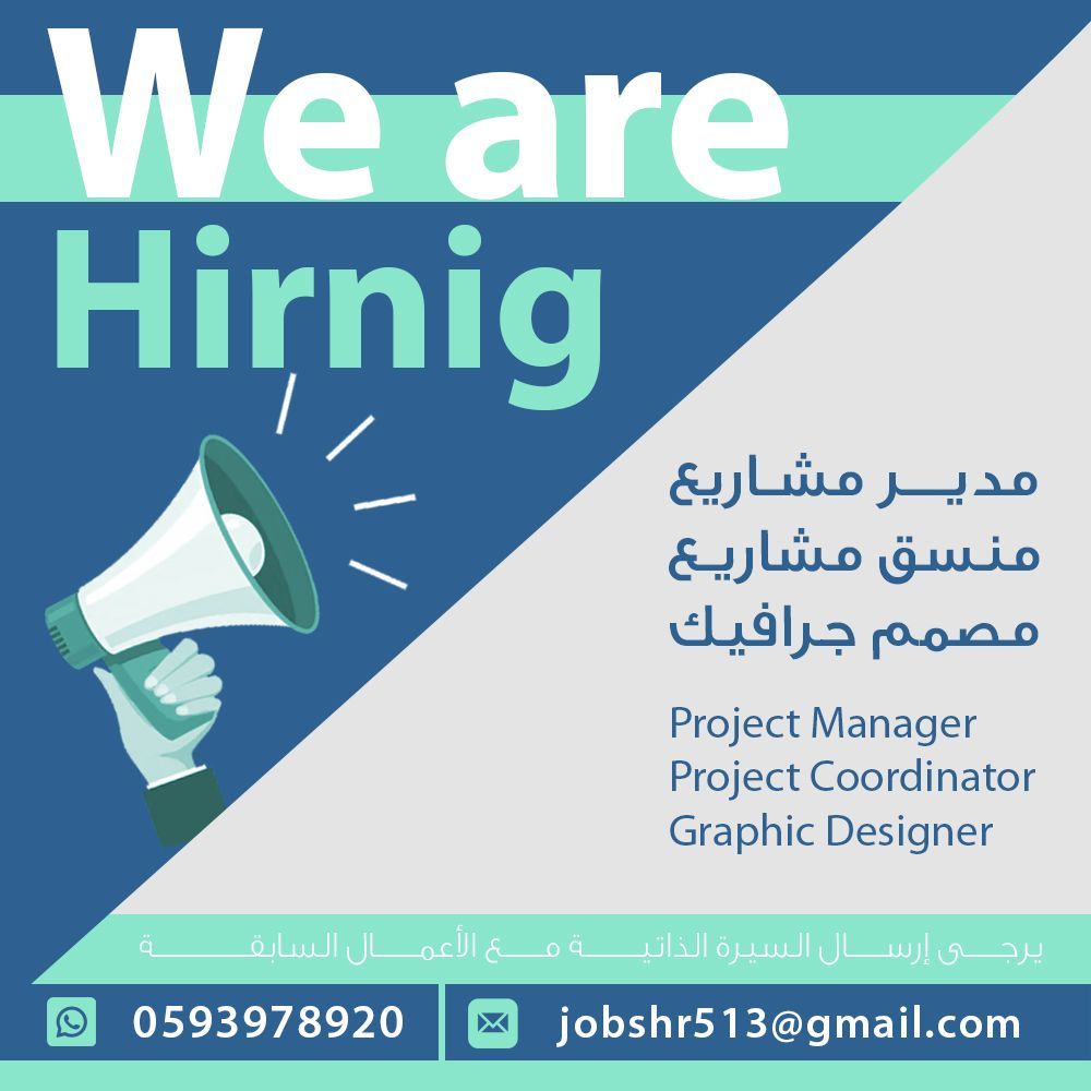 شركة كبرى تعمل في مجال المعارض والمؤتمرات تبحث عن موظفين من الجنسين بالشواغر الآتية. مشرفين مشاريع - منسقين مشاريع - مصمم جرافيك، العنوان الرياض - حي الملقا - شارع انس بن مالك