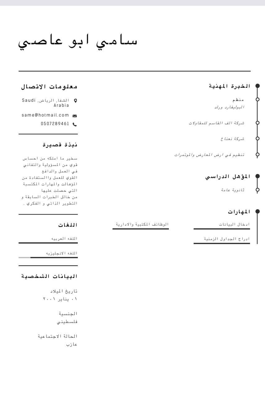 أحتاج وظيفة مرة ضروري فلسطيني مواليد العمر 24 سنة لدي خبرات سابقه كثيره اشتغلت بشركة ألف القاسم للمقاولات وأيضا استغلت ببولي فارد سيتي وأيضا وورد سنتنين وأيضا أجيد استخدام الحاسوب واللغة متمكن منها من فضلكم أي عمل تواصلوا معي من الرياض