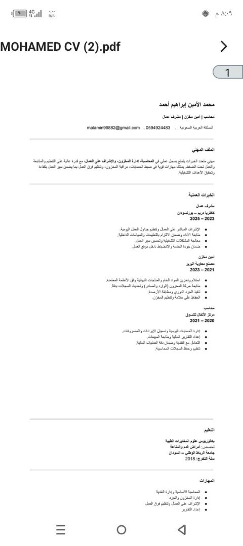 مقيم يمني جديد المهنة عامل المؤهلات حافظ للقرآن الكريم بكالوريوس علوم قرآن والرخصة الدولية لقيادة الحاسوب وخبرة في المحاسبة المالية