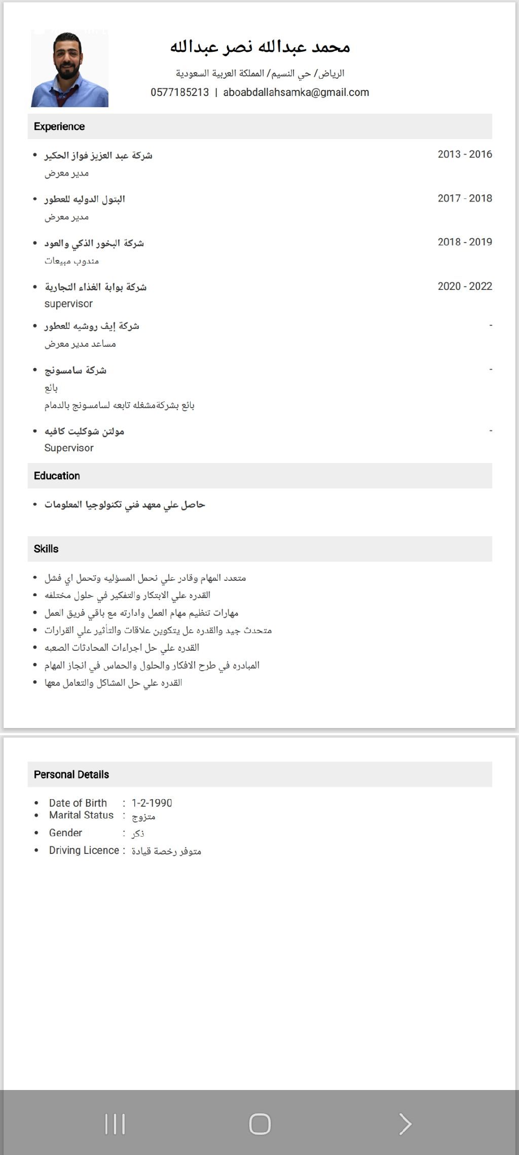 ابحث عن عمل سائق أو مندوب مبيعات أو كاشير بمطعم خبرة أكثر من 15 سنة في السعودية ولدي رخصة قيادة سبق وأن عملت بائع في مجال العطور والبخور والملابس وعملت في مجال المطاعم بوظيفة كاشير ومتواجد حاليا في الرياض