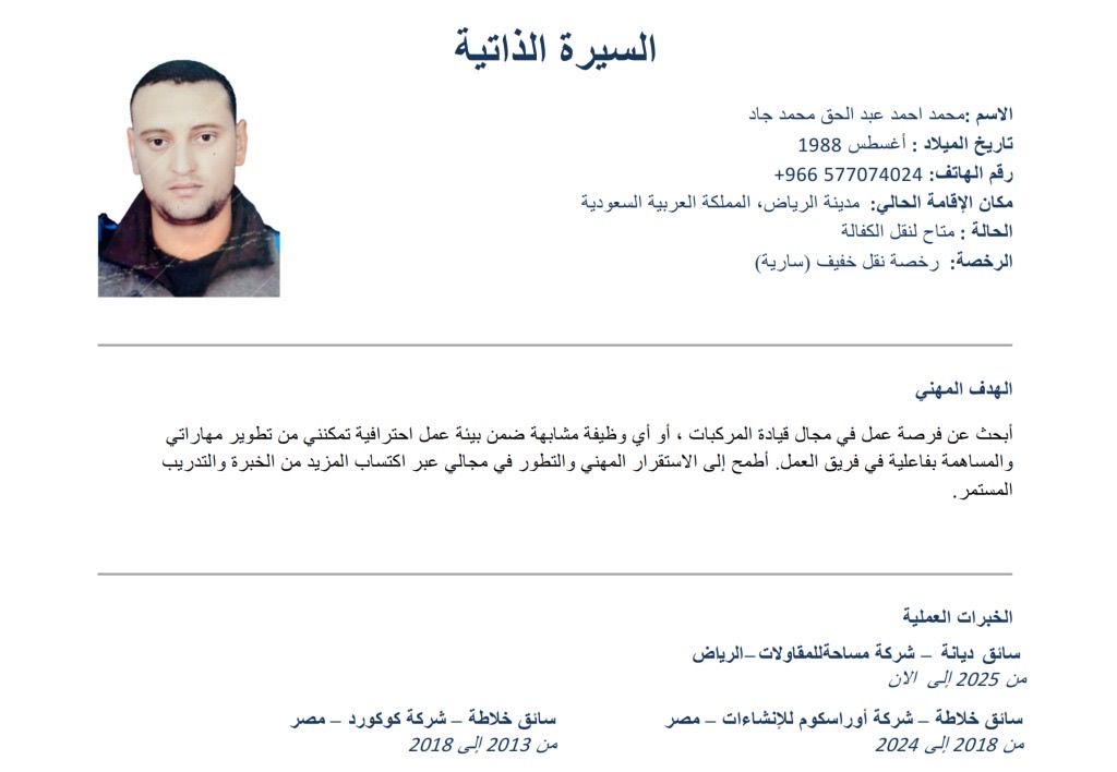 سائق خاص / سائق دينا / سائق كوستر - متاح بجميع أنحاء المملكة ابحث عن فرصة عمل سائق خاص أو سائق دينا أو كوستر متواجد حاليا في الرياض، ومتاح للعمل في كافة أنحاء المملكة، وقابل لنقل الكفالة. خبرة أكثر من 20 عاما في القيادة ملتزم ومحترم وطموح لا أتدخل في شؤون لا تخصني معرفة جيدة بطرق المدن الرئيسية جاهز للعمل فورا بإذن الله للتواصل الجاد اتصال