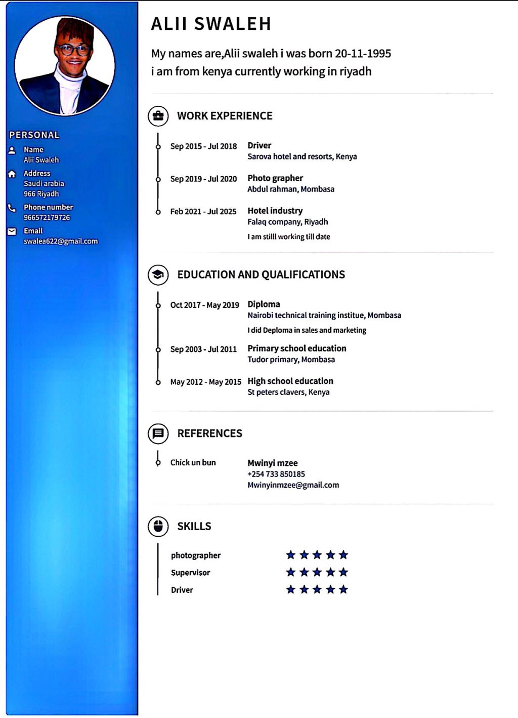 My name is Alii swaleh am a muslim I am currently in Riyadh am looking for any job vaccancy