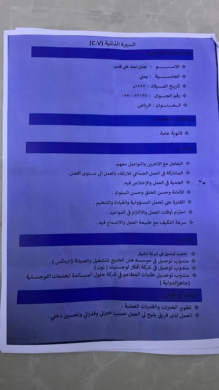 شاب يمني مقيم في الرياض لدي رخصة سارية وإقامة سارية ابحث على عمل