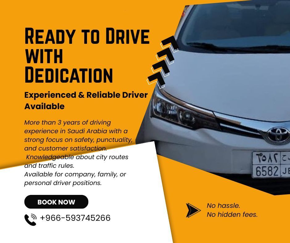 I have Own CAR) Looking for a skilled and dependable driver I have over 3 years of driving experience in Riyadh, Saudi Arabia, with a proven record of safety, punctuality, and customer satisfaction. Well - versed in city routes, traffic regulations, and vehicle maintenance, I ensure every trip is safe, smooth, and on time. Fluent in English, Arabic, and Urdu, I can communicate easily with clients