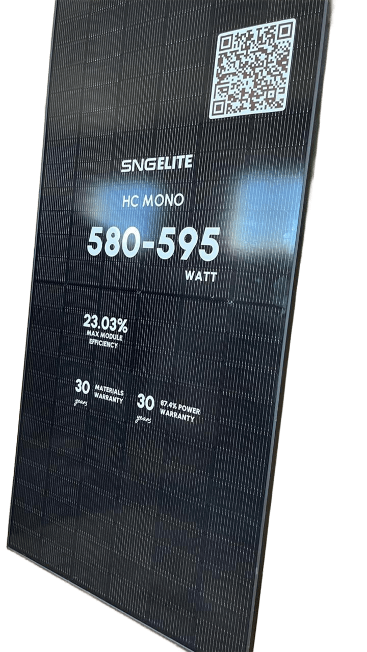 ألواح شمسية عالية الكفاءة للبيع ألواح TOPCon مونوكريستالين موديل SNG 580 - 595W كفاءة تصل الى 23% معتمدة من IEC وISO مقاومة للحريق والتأثير الكهربائي زجاج مقاوم للخدش واطار ألومينيوم متين تكفي لتشغيل مزرعة صغيرة، استراحة، أو فيلا بالكامل حسب عدد الألواح المطلوبة. المتوفر 720 لوح فقط جاهزة للتسليم الفوري للتواصل واتساب أو اتصال