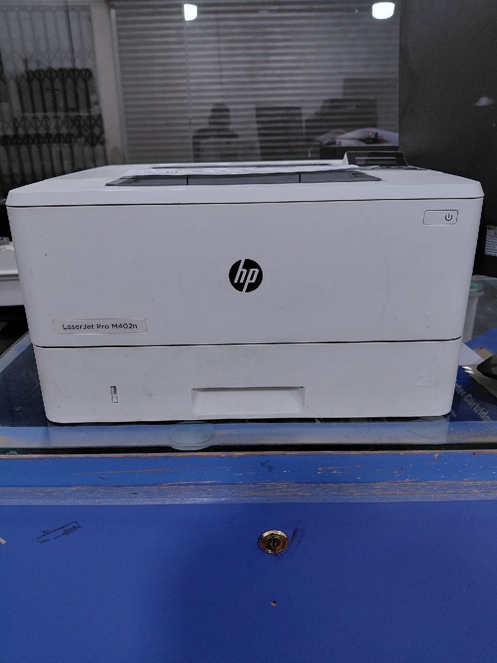 طابعة لايزر جيت أسود HP laserjet pro M402n. شبه زيرو حبارة تطبع أكثر من 1500 ورقة. وصلة USB ووصلة LAN. عملية حبرها رخيص وقطع غيار متوفر السعر النهائي 250 ريال